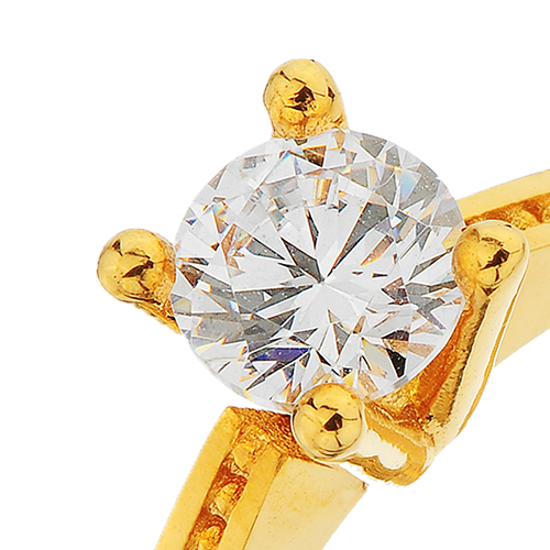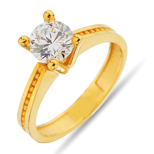 This dreamlike 21k gold Yellow ring, produced by Larin is delicately conceived with a beautiful gem in the claws of the four points. The small bands add elegance to the classic environment.